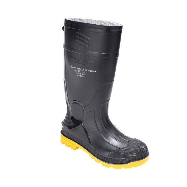 Botas de hule Predator de 38 cm, con corte de PVC ideal para ambientes húmedos o de construcción. Su suela antideslizante con diseño de auto-limpieza es resistente a la abrasión, flexión y desgarre, proporcionando tracción y estabilidad. Cuenta con puntera de acero para mayor protección y un diseño italiano ergonómico que ofrece comodidad. Fabricada mediante doble inyección, incluye una calceta de poliéster antibacterial para mantener los pies frescos y protegidos. Ideal para un alto rendimiento y seguridad en el trabajo.