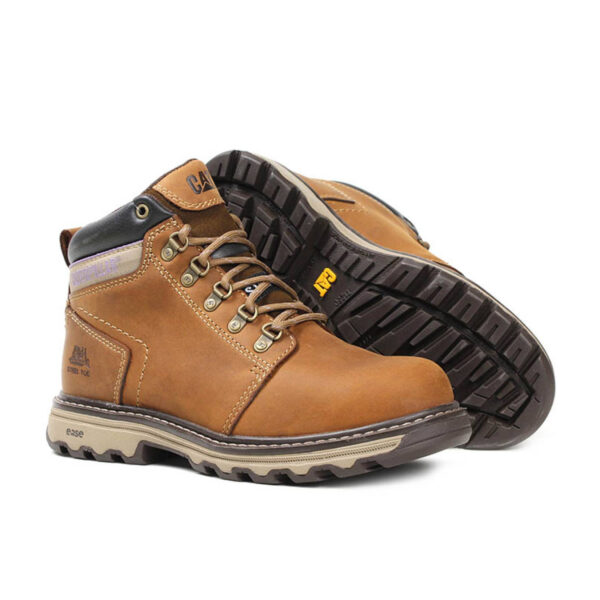 Bota industrial Mae caterpillar puntera steel toe y ojetes de metal Brindan el máximo nivel de protección contra impactos y compresión, asegurando una defensa superior en entornos laborales exigentes. Están diseñadas para ofrecer protección eléctrica de hasta 14,000 voltios en condiciones secas, garantizando seguridad adicional en ambientes de alto riesgo eléctrico.