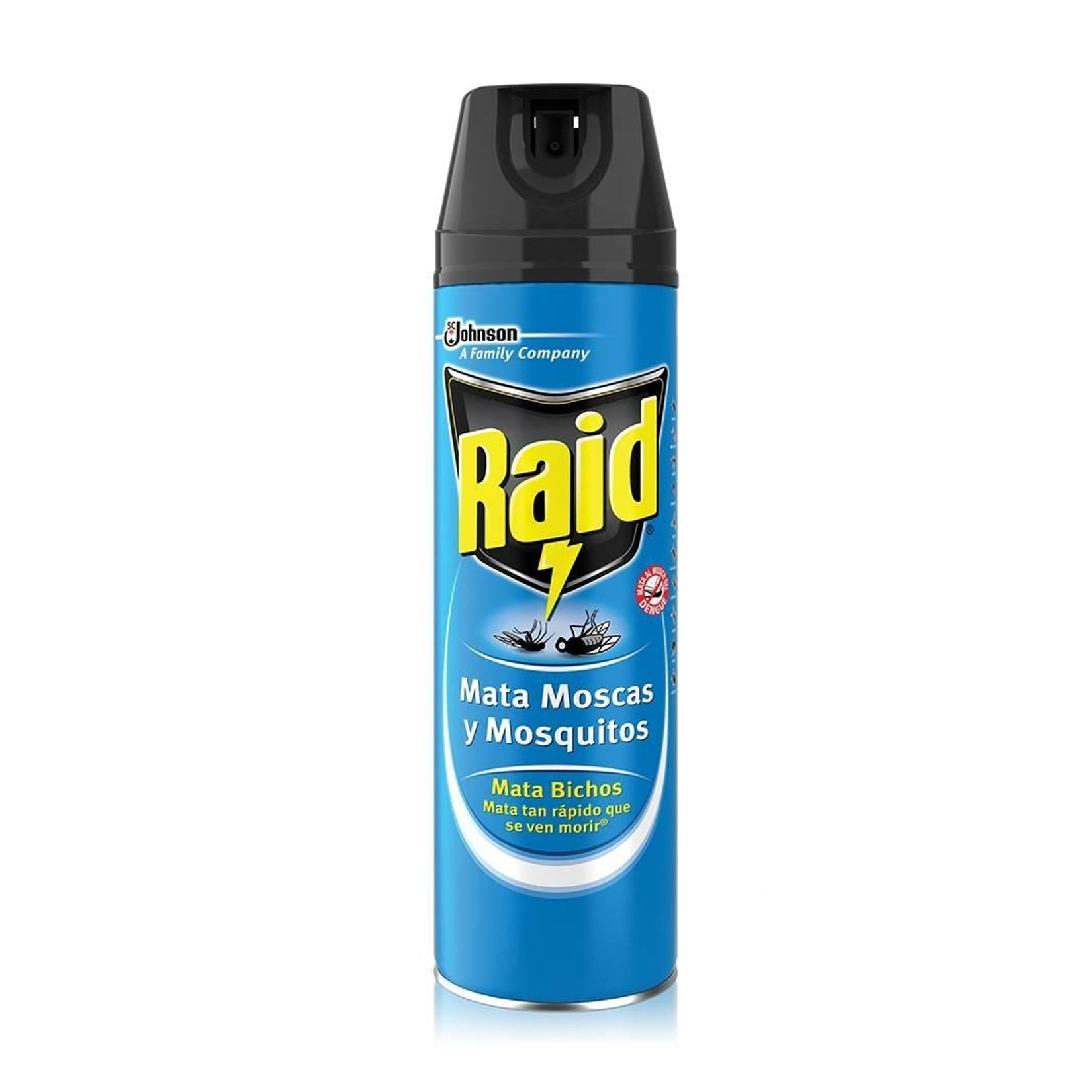 Insecticida en aerosol Raid 400 ml está especialmente formulado para matar diversos insectos voladores, entre ellos, moscas, mosquitos, avispas y avispones. Puede usarse tanto en interiores como en exteriores.