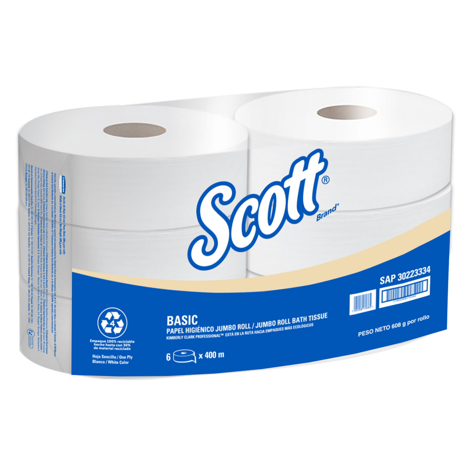 El Rollo de papel higiénico Scott basic 400m 1 pliego es perfecto para aquellas industrias o zonas francas que requieran un papel de calidad, con alto rendimeinto y economía. Su alto metraje y componentes que se degradan con facilidad hacen de este papel la mejor opción en establecimientos de alto tráfico y que necesiten productos amigables con el medio ambiente.