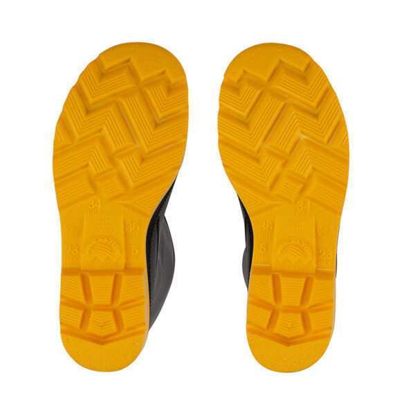 Bota de seguridad de 38 cm, con corte de PVC ideal para ambientes húmedos o de construcción. Su suela antideslizante con diseño de auto-limpieza es resistente a la abrasión, flexión y desgarre, proporcionando tracción y estabilidad. Cuenta con puntera de acero para mayor protección y un diseño italiano ergonómico que ofrece comodidad. Fabricada mediante doble inyección, incluye una calceta de poliéster antibacterial para mantener los pies frescos y protegidos. Ideal para un alto rendimiento y seguridad en el trabajo.